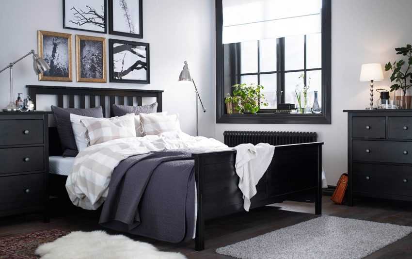Если в спальне больше белого цвета, то особое внимание стоит уделить предметам декора. Они должны быть черными: