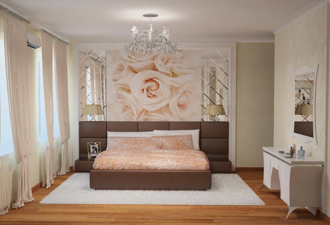 Светло-коричневый цвет подойдет для хорошо освещенной спальни. Этот тон встречается в классическом интерьере.