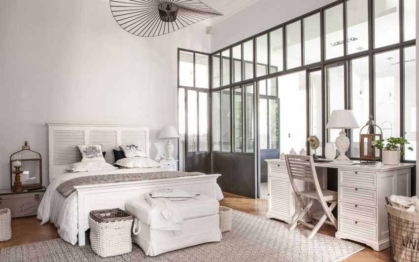 Юг Франции, где зародился стиль, отличается ярким солнцем и морским бризом. Поэтому и цвета для спальни подбирают светлыми, как будто за свою жизнь они успели выгореть на солнце и получить свою порцию соленых брызг.