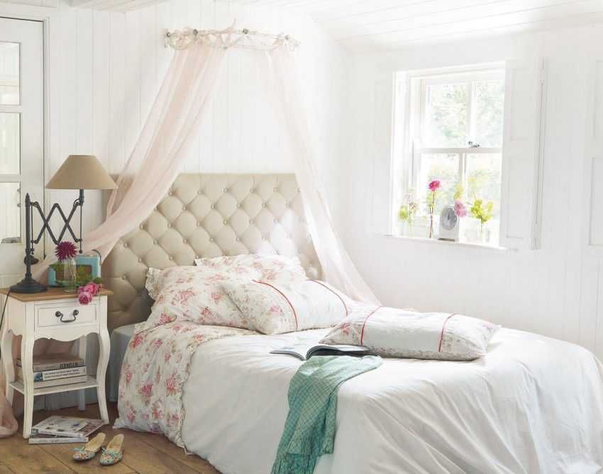 Мансарда – идеальное место для создания спальни в стиле прованс. В таком помещении обычно много больших окон и нет дорогой отделки.