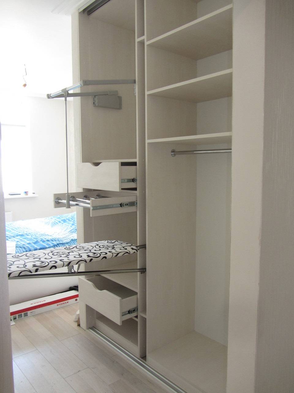 Доска, встроенная в шкаф, имеет условное сходство с выдвижными.