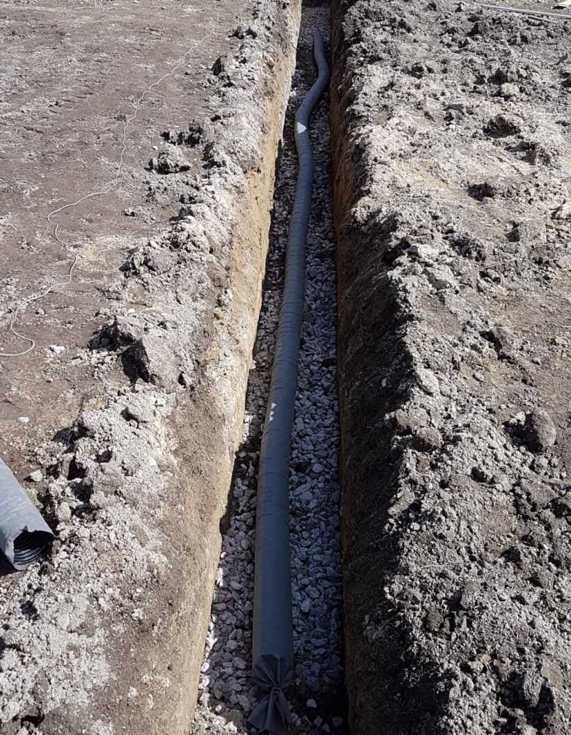 Для установки дренажа закрытого типа прорывается траншея, а в нее укладываются фильтрующие материалы:
