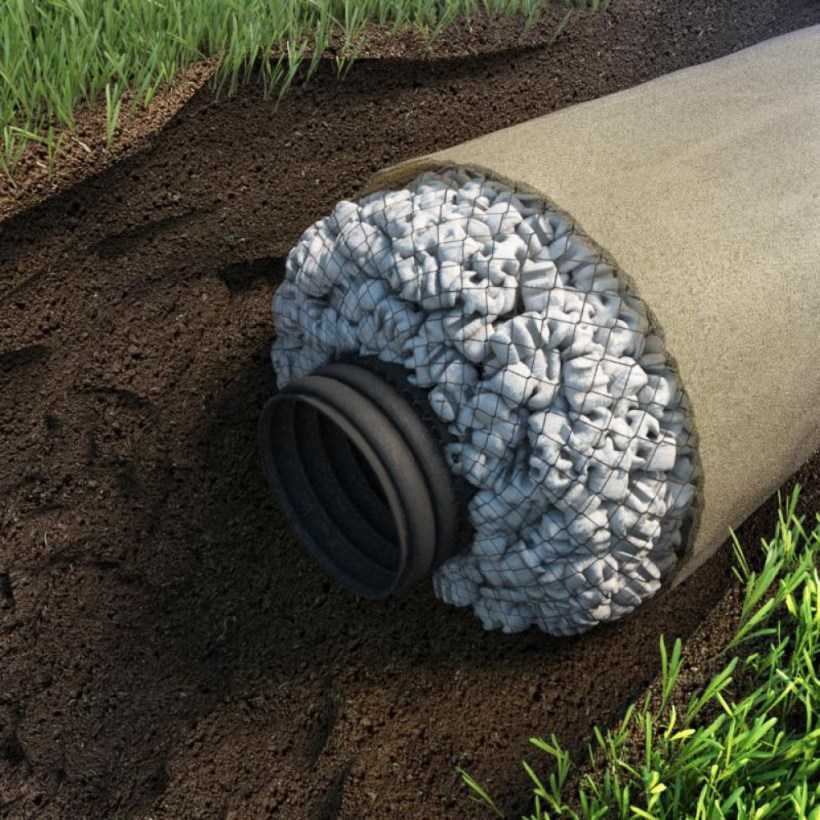 Для изоляции от засорения мелкими частицами применяются фильтры из геотекстиля или кокосового волокна. При небольших диаметрах труба обматывается на станке, если дрена больше 250 мм в сечении, то обычно фильтр накладывают вручную. На почвах с содержанием щебнеобразных частиц фильтрующая обмотка не нужна, для песчаных суглинистых, глинистых грунтов — фильтр обязателен.