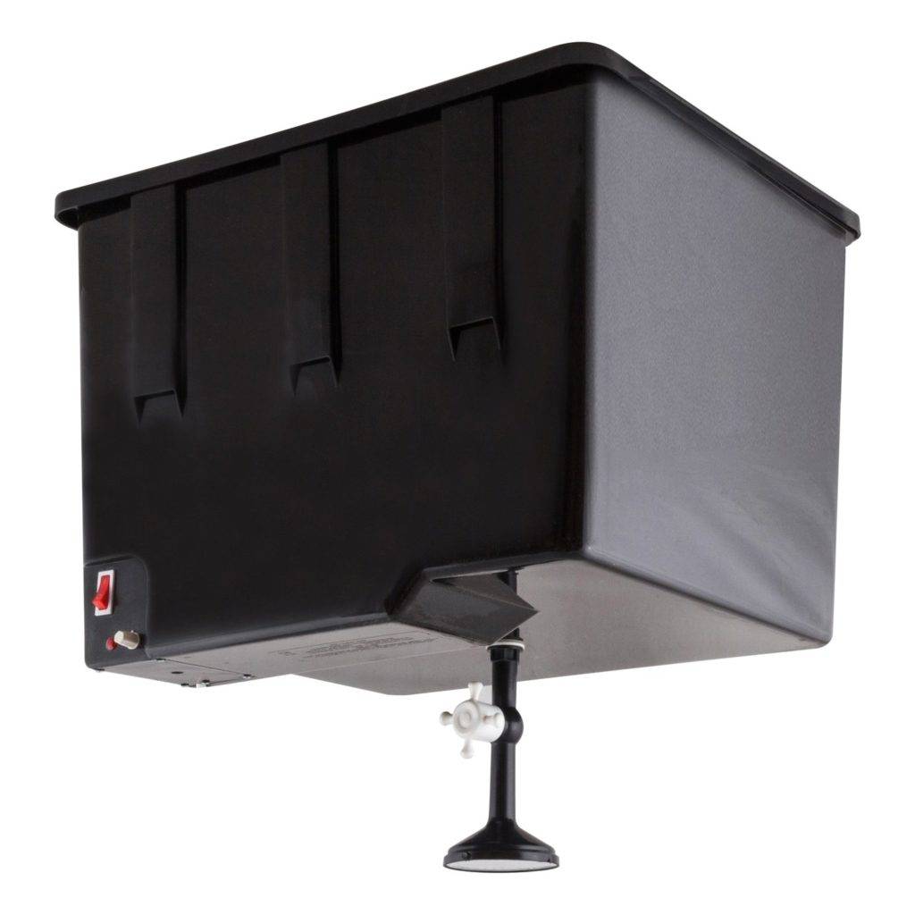 В готовом или самодельном баке предусматриваются фитинги для подсоединения трубок для подведения воды и крепления излива, крышка для обслуживания. Емкости заводского производства могут дополнительно оснащаться устройством для подогрева воды с терморегулятором и поплавковым клапаном, контролирующим уровень воды.