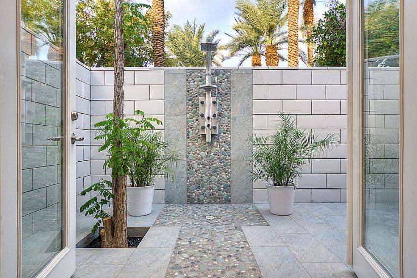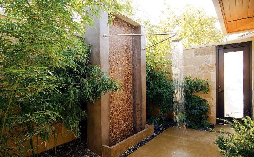 Дизайн такой душевой позволит не только освежиться в жаркий летний день, но и доставит эстетическое удовольствие