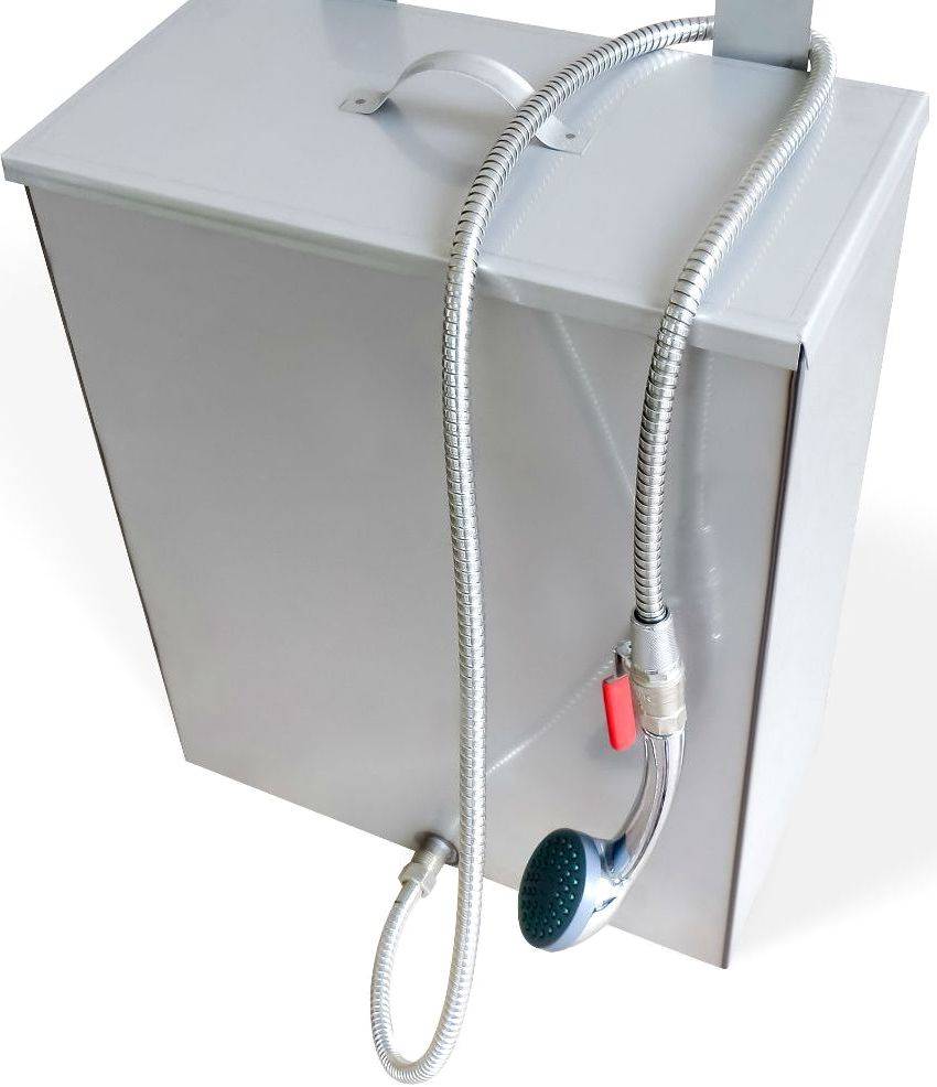 Если у вас нет возможности построить летний душ для дачи своими руками, то выходом из ситуации станет переносной летний душ с нижней подачей воды