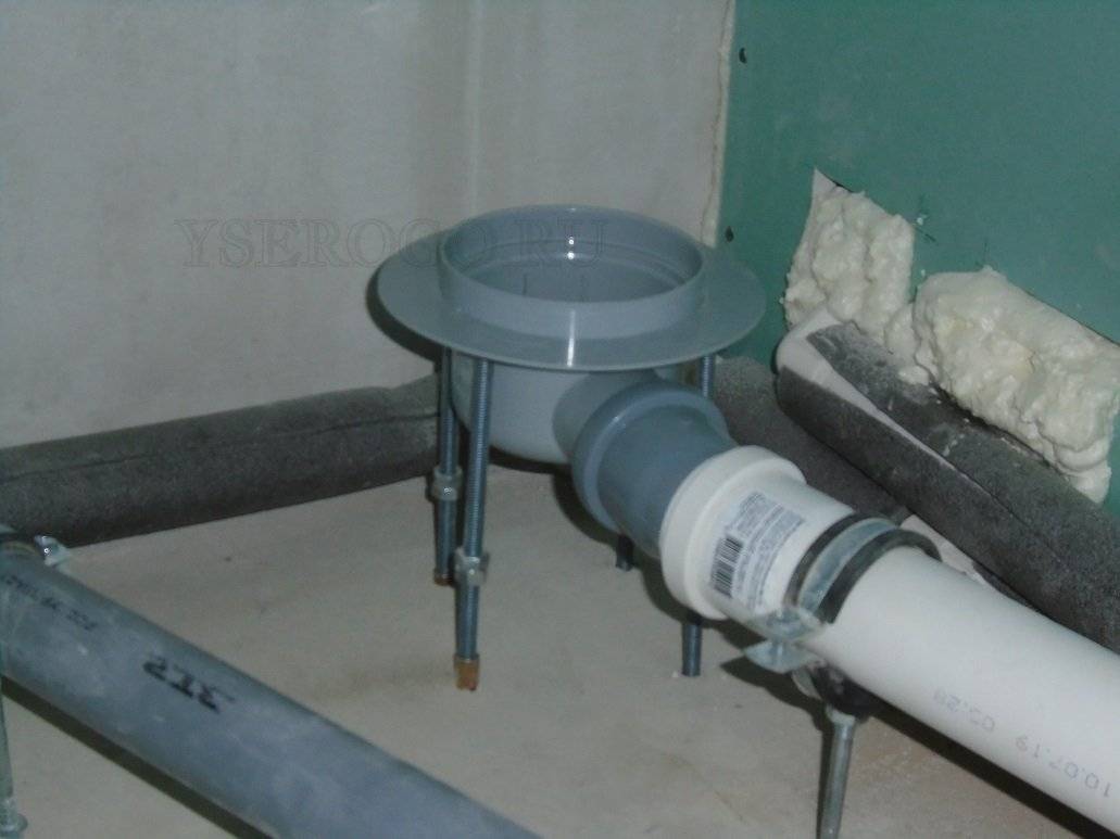 Конструкция слива на фото выше сделана так, что уровень фланца будет неизбежно ниже чистовой стяжки. Поэтому в будущем необходимо формировать стяжку только до фланца,