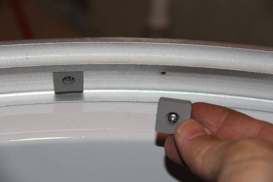 Изнутри прикручиваем на саморезы 12 мм резиновые ограничители для дверец.