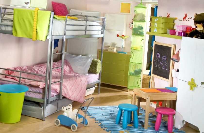 Однако нельзя слишком снижать верхнюю кровать, так как на нижнее спальное место будет присаживаться взрослы человек и ему будет неудобно постоянно пригибаться или биться головой. Также следует учитывать, что дети не всегда будут такими низкими, а значит, расстояние между верхним спальным местом и потолком так же должно подходить для взрослого.