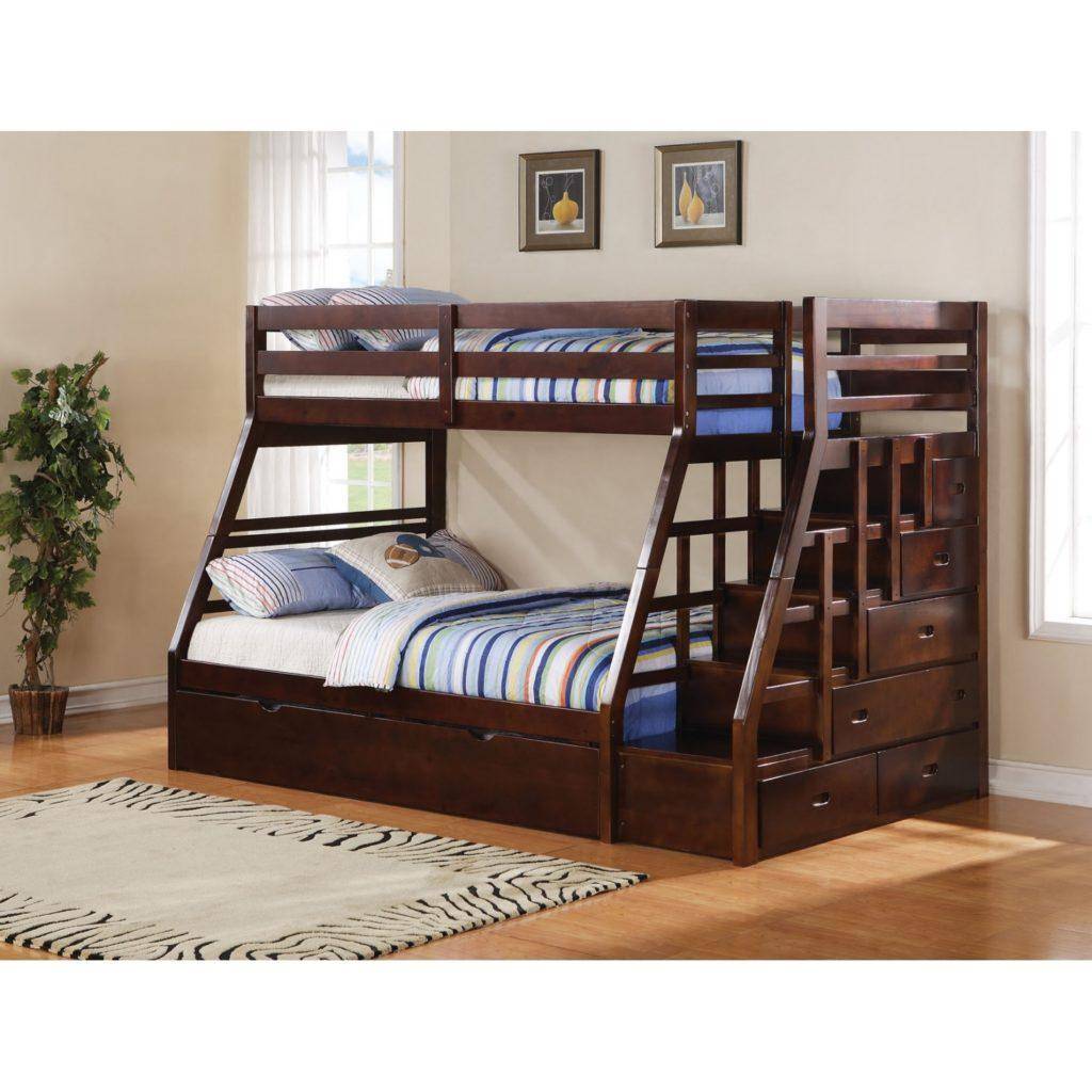 Такие кровати часто предпочитают устанавливать владельцы миниатюрных квартир с одной комнатой. На первом этаже располагается большая кровать для взрослых, а на верхнем – односпальная для ребенка. Сама конструкция имеет интересную форму трапеции, она отлично впишется в интерьер любого типа и позволит сохранить пространство. Обычно такие конструкцию делают массивными, благодаря чему они устойчивые.