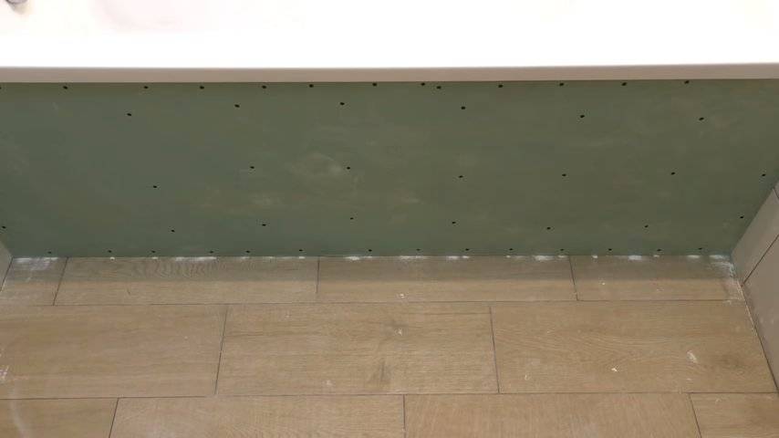 Чтобы соорудить экран, облицованный плиткой, сначала нужно построить основу. Сделать это можно с использованием различных материалов, но удобнее всего применять влагостойкий гипсокартон или пазогребневые плиты.