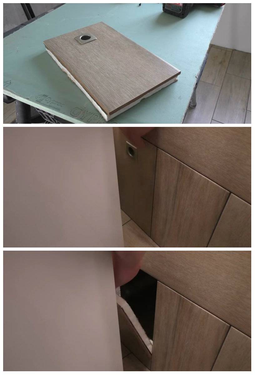 - Подготовка люка. На месте ревизии вырезают отверстие под лючок из пластика.