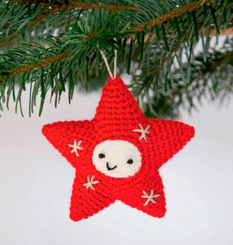 Пришейте колпачок к звездочке. Приклейте глазки и вышейте нитками носик и ротик.