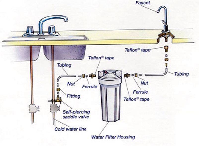 Если в доме уже имеется водяной фильтр, например, трехблочный фильтр проточного типа, то вполне возможно собрать своими руками упрощенный вариант фильтровального устройства.