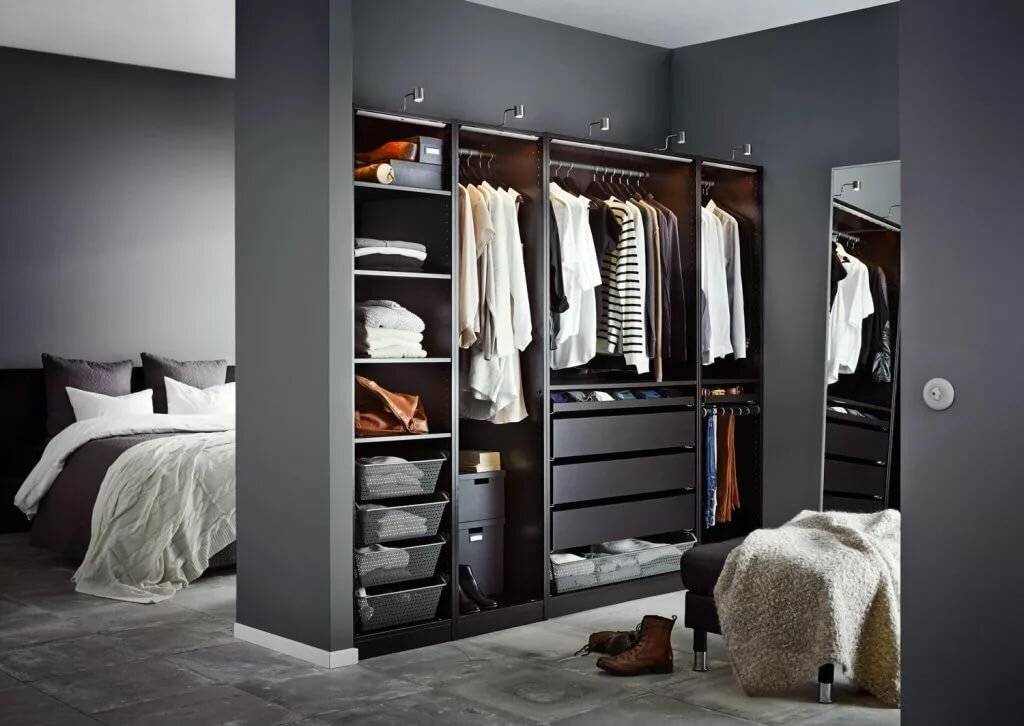 Гардероб может быть компактным и занимать минимальное количество площади или представлять собой просторную комнату для хранения всех необходимых вещей.