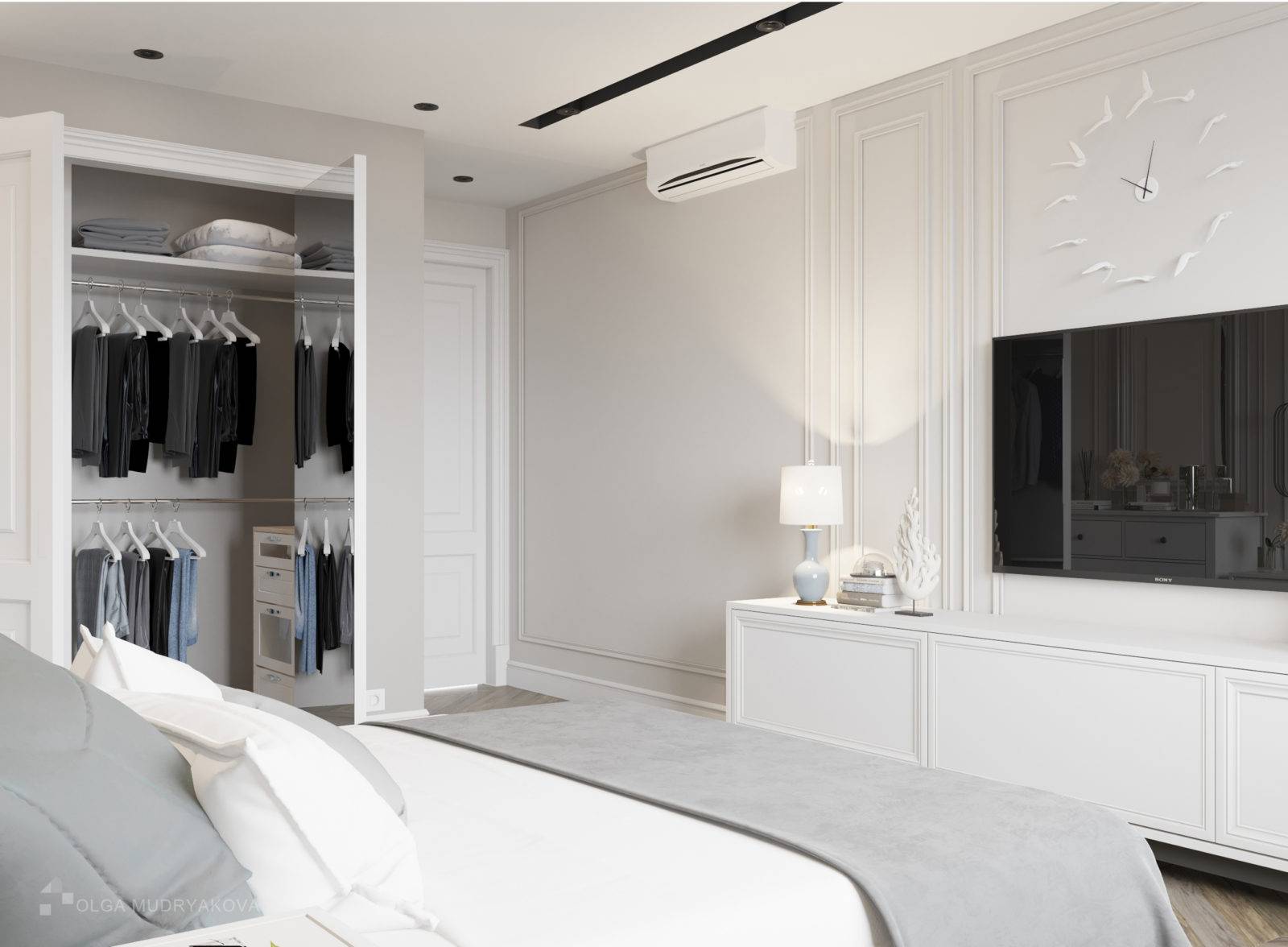 Итак, интерьер спальни 18 кв м с гардеробной создавался следующим образом: