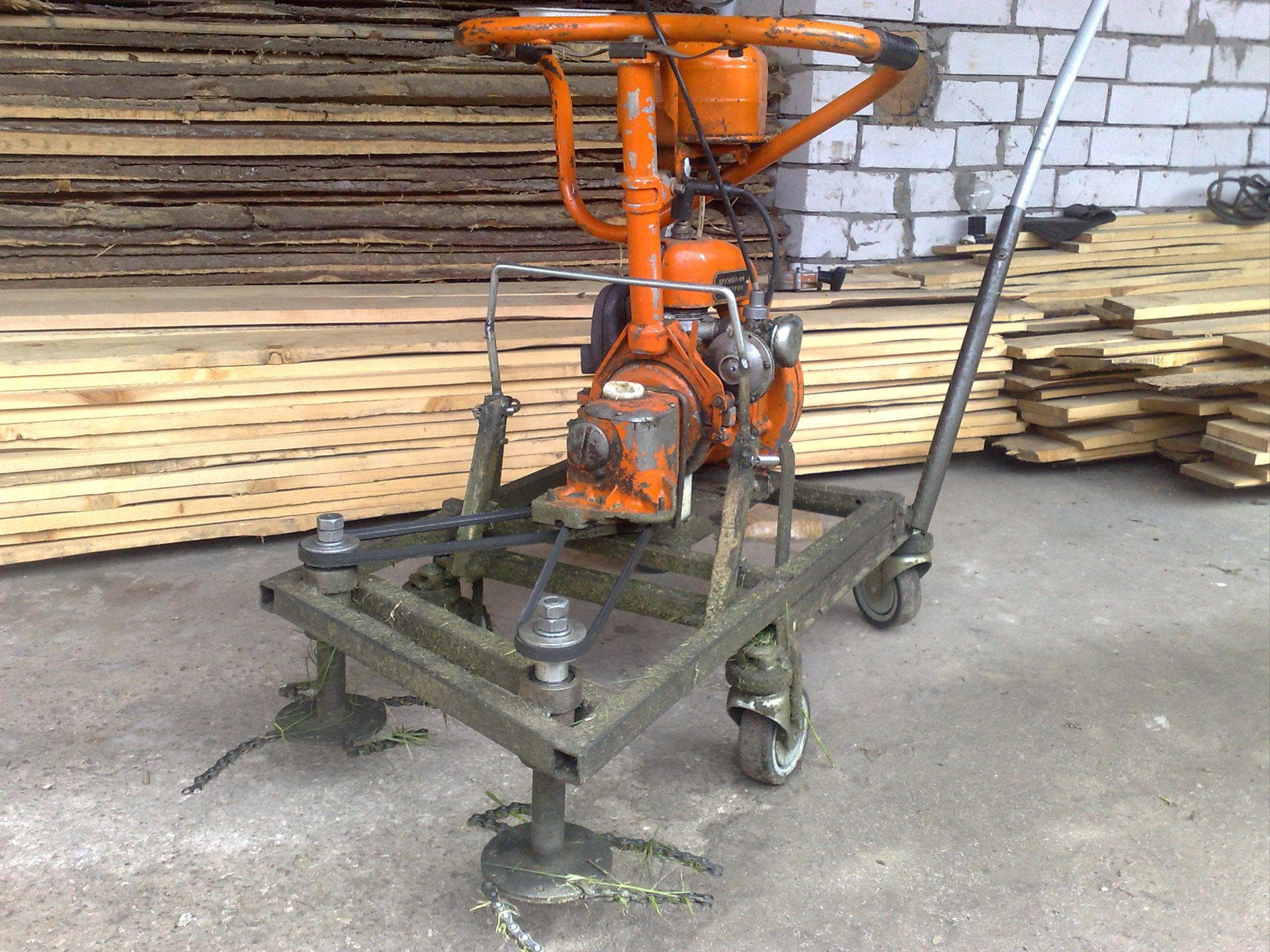 Итак, приступим. В данной газонокосилке сам двигатель мы возьмем из старой бензопилы, именно в сборе. Однако если устройство не рабочее, то в таком случае она нам не подойдет. Вы должны помнить о том, что изменять в его механизме ни в коем случае ничего ненужно.Просто достали из бензопилы и установили в тележку подвижного характера.