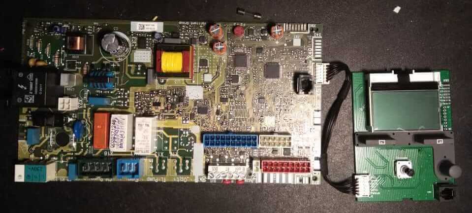 У некоторых моделей котлов (Vaillant, Ariston, Navien) блок управления состоит из основной платы и информационной платы (платы дисплея). Котел также может не включаться при поломке платы дисплея. Плата дисплея в отличие от основной стоит дешевле, но чаще всего не ремонтируется. В этом случае выявить неисправность можно лишь заменой заведомо исправной детали.