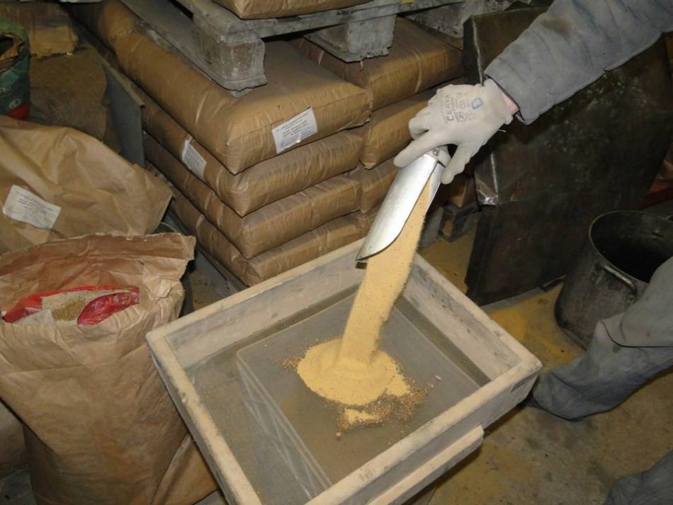 - первым делом песок просевается через сито, для удаления крупных фракций мусора;