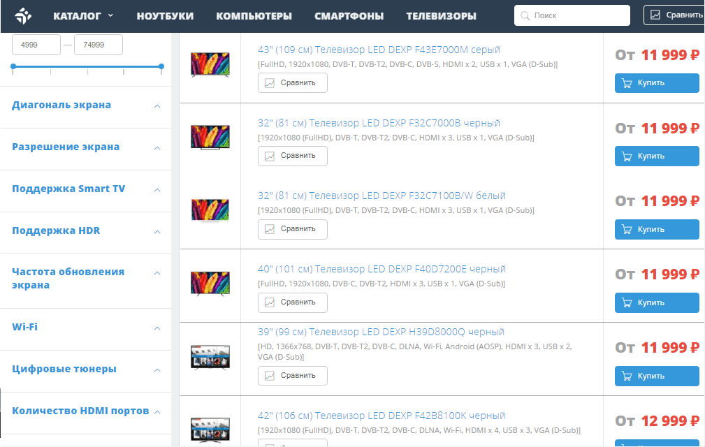 А самое главное — это доступные цены. С DEXP вы можете позволить себе продвинутый ТВ с UltraHD и Smart TV, даже если несколько ограничены в средствах. Или если потратили все деньги на новенький айфон, а хороший телевизор все равно хочется Добро пожаловать!