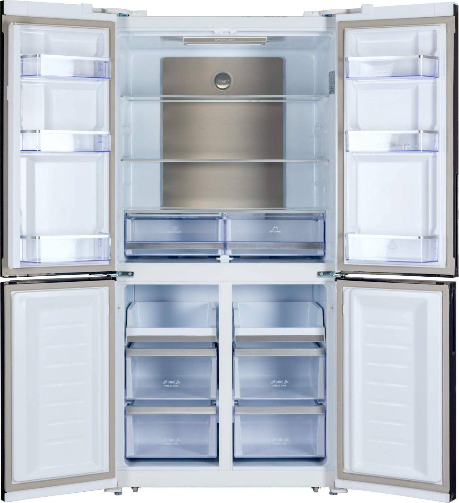 Естественно, с технической «начинкой» и дизайном у «старшего брата» дела куда веселее, чем у младшего. «Ноуфросты», льдогенераторы, модели «сайд-бай-сайд», быстрая разморозка, LED-дисплей и освещение, динамическая заморозка… Цвета, опять же, разные. Дверцы то пластик, то металл, а то и вообще отделаны стеклом (без специального покрытия, умучаетесь отпечатки пальцев убирать). Красота, в общем.