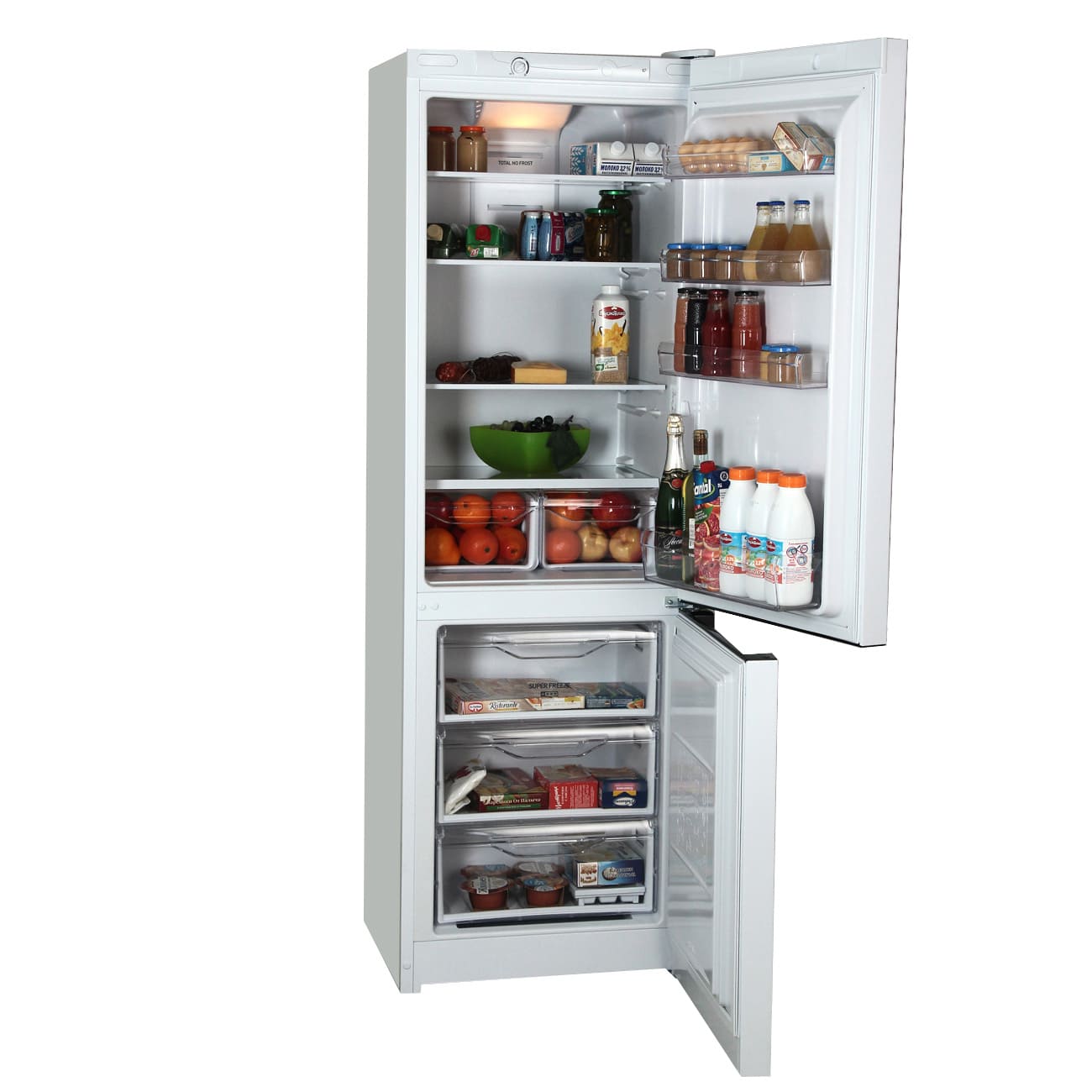 Бюджетная модель имеет механический регулятор температур и оснащена функцией авторазморозки. Объемное холодильное отделение позволяет разместить все продукты, включая яйца, мелкие баночки и бутылки с водой. Для них предусмотрены специальные отсеки на дверцах. В морозилке находится генератор льда и широкие отделы для продуктов.