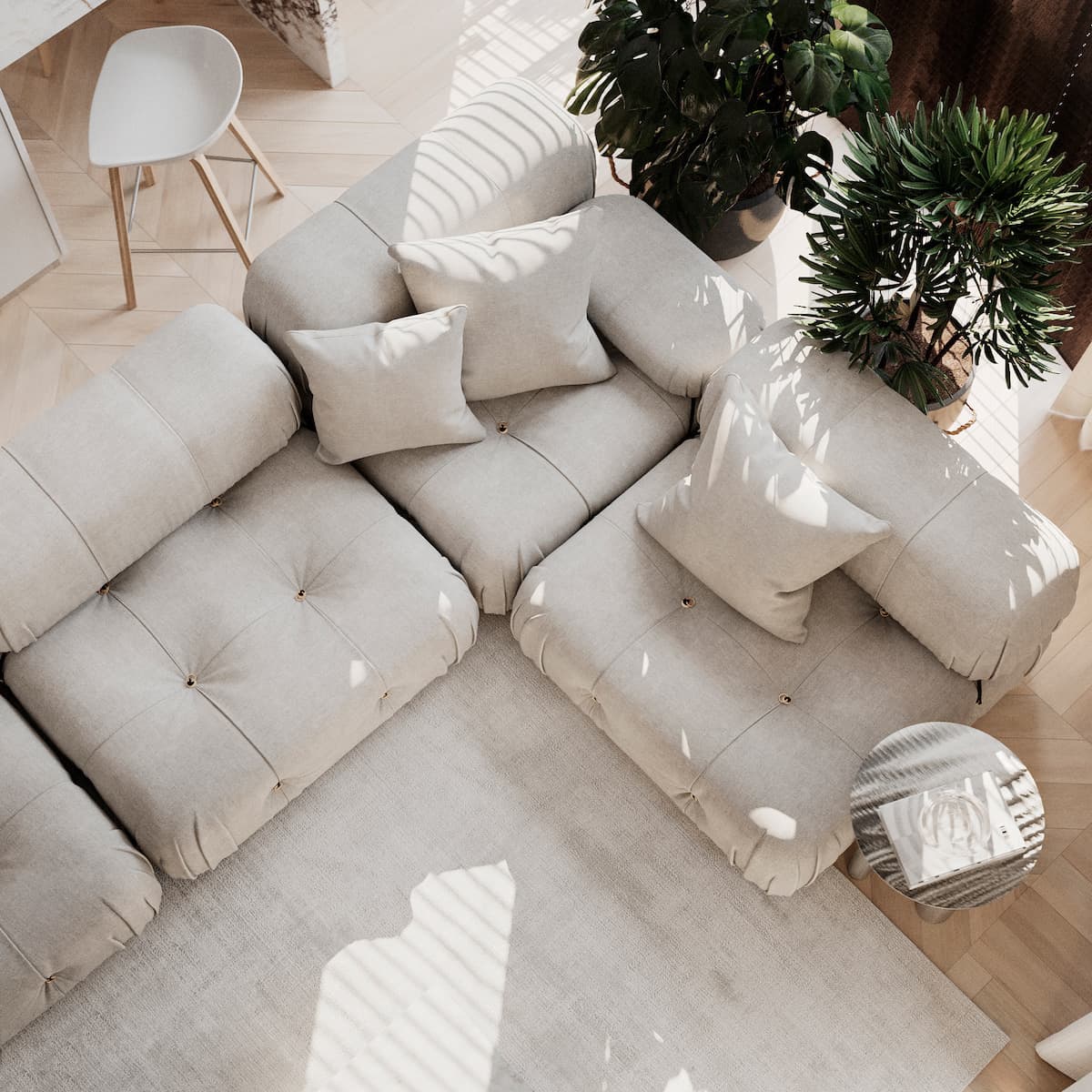 Прохладный и нежный многогранный миндаль преображается в зависимости от соседствующих с ним цветов. Оригинальное сочетание составляет с насыщенной синевой, глубокой зеленью, графитом. Может миндальный тон доминировать в интерьере или исполнять вспомогательную роль цвета-компаньона.