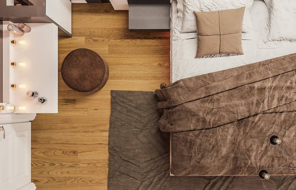 Коричневый цвет является олицетворением природы: это деревья, земля, камни. Принято считать коричневый осенним цветом, поэтому многие воспринимают его как унылый. Но при правильном сочетании цветов в интерьере спальни коричневый дает изумительные, великолепные контрасты и очаровывает глубиной. В наиболее распространенных комбинациях с бежевым, белым он утрачивает мрачность. В сочетании с фиолетовым коричневый образует отличный тандем, который специалистами признан одним из самых спокойных.