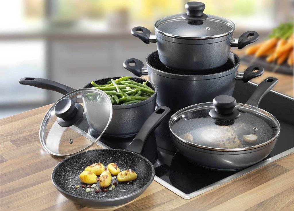 • привередливость — посуда, которая сможет подойти для готовки, найдется далеко не на всякой кухне. Во-первых, ее размеры должны быть строго выверены, иначе плита просто не воспримет факт нахождения на поверхности кастрюли или сковороды. Во-вторых, хоть многие и уверяют, что подойдет любая посуда, это не так. Для индукционных плит идеальным вариантом будет специальный набор именно для этого класса. У них увеличена толщина дна, что позволяет обеспечить лучший результат. У обычной, даже весьма качественной, кухонной утвари эти показатели не достаточны, в результате чего большинство домохозяек отмечают странный вкус блюд. А вот эмалированные и тем более обычные алюминиевые кастрюли вообще не пригодны для индукционных плит.
