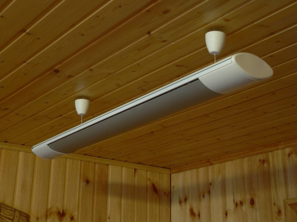 - ламповые устройства. Лампы с ИК излучением мало чем отличаются от обогревателей, разве что методом монтажа. Их крепят к потолку под определенным наклоном. Таким образом, отапливаются большие производственные помещения и цеха;