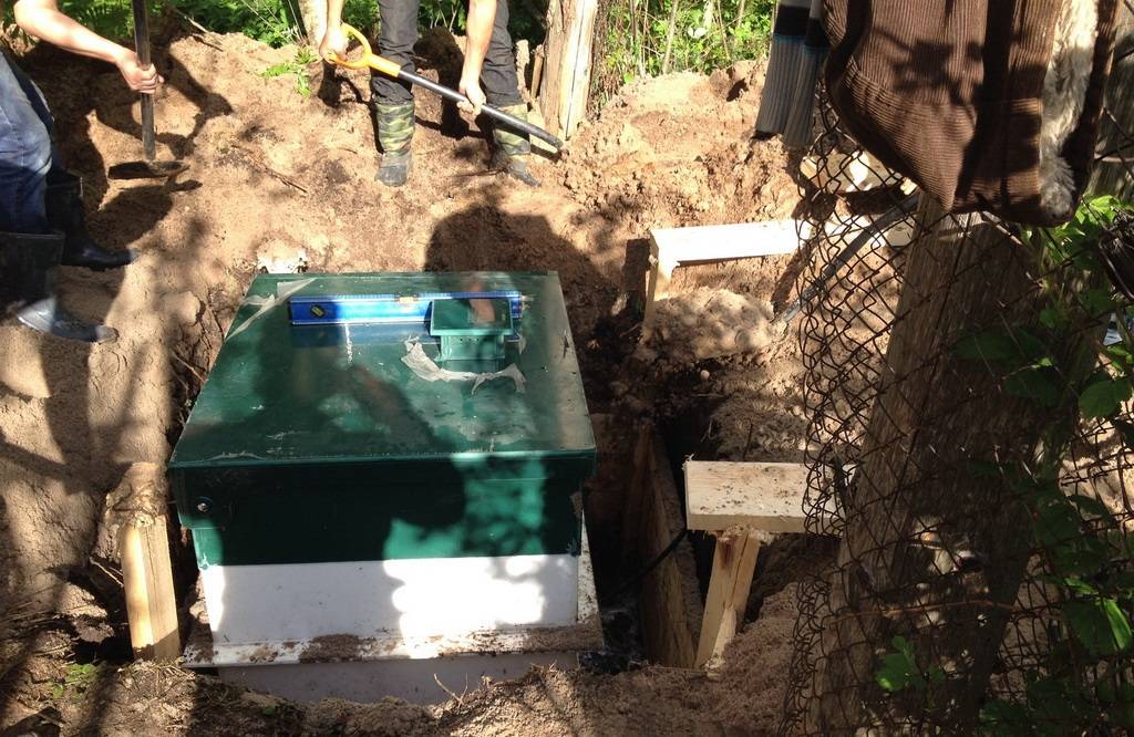 Установка септика всегда начинается с выкапывания котлована нужного размера. При установке готовых «танков» заводского изготовления, надо обязательно предусмотреть бетонную подушку, к которой надо будет закрепить септик, чтобы его не вытолкнули наружу силы пучения.