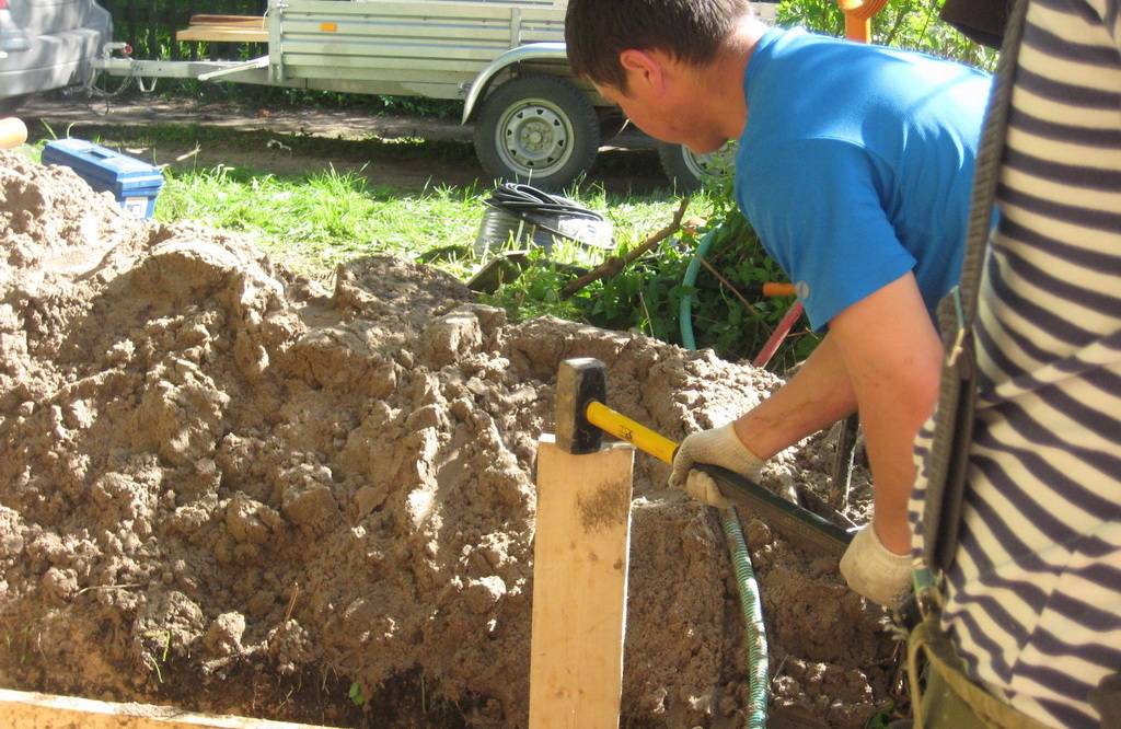- Низкий уровень грунтовых вод. Летом грунтовые воды поднимаются близко к поверхности, затрудняя рытье котлована. Работа осложняется тем, что мокрый грунт прилипает к лопате, а стенки вырытых конструкций теряют форму. В таком случае решение рыть котлован зимой выглядит более рациональным.