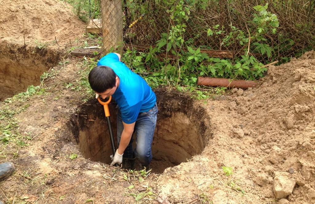 - Создание котлована с учетом размеров септика и методов копания. Выделяют горизонтально расположенные и вертикальные котлованы.