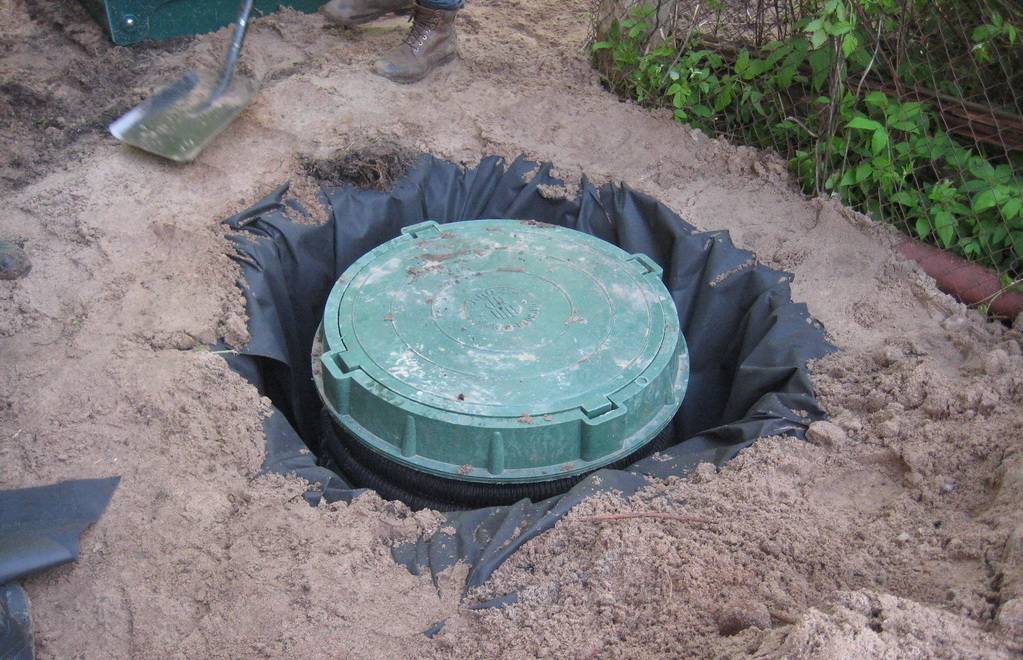 Водоприемник устанавливается в том случае, если в планах владельца – использовать очищенную воду для дачных нужд (например, для полива растений) либо если отсутствует возможность сброса сточных вод в грунт или водоем. В этом случае отводящая труба от септика подводится к герметичному сооружению, имеющему дно. Вокруг стенок водоприемника создается песчаная подушка, а верхняя часть плотно закрывается крышкой. Накопитель должен быть обязательно оборудован насосом, который будет удалять из него воду