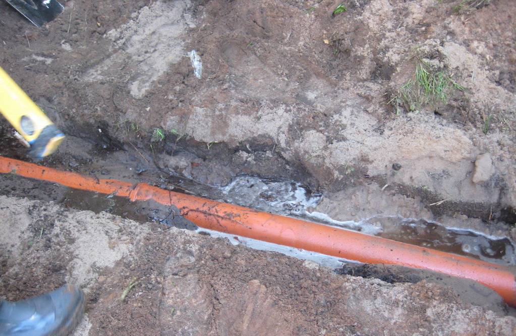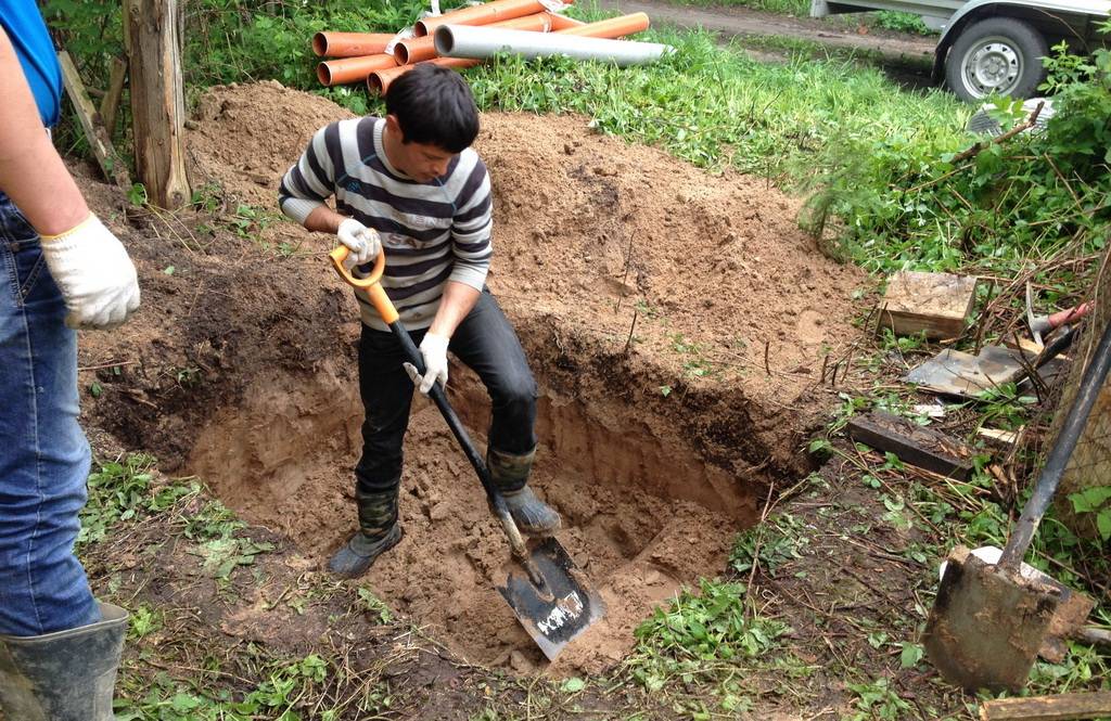 Кроме ямы для самого септика надо прокопать траншеи для подвода канализационных труб и отвода очищенных стоков. Если септик будет эксплуатироваться круглый год, то трубы надо вести ниже уровня промерзания почвы.