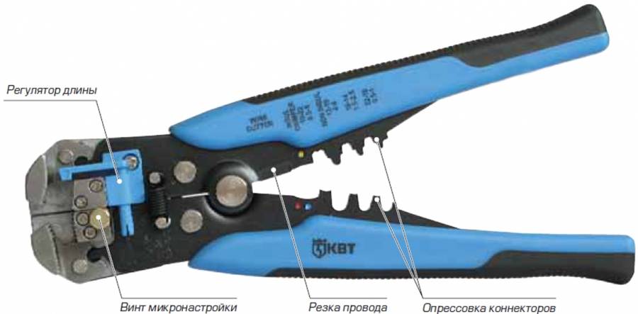 Инструмент автоматически подстраивается под размер жилы и также автоматически снимает изоляцию. Снятие изоляции с жил провода очень мелкого сечения возможно благодаря наличию специальной регулировки. Кроме снятия изоляции с жилы, можно также снимать внешнюю изоляцию (оболочку) с плоского или круглого провода.