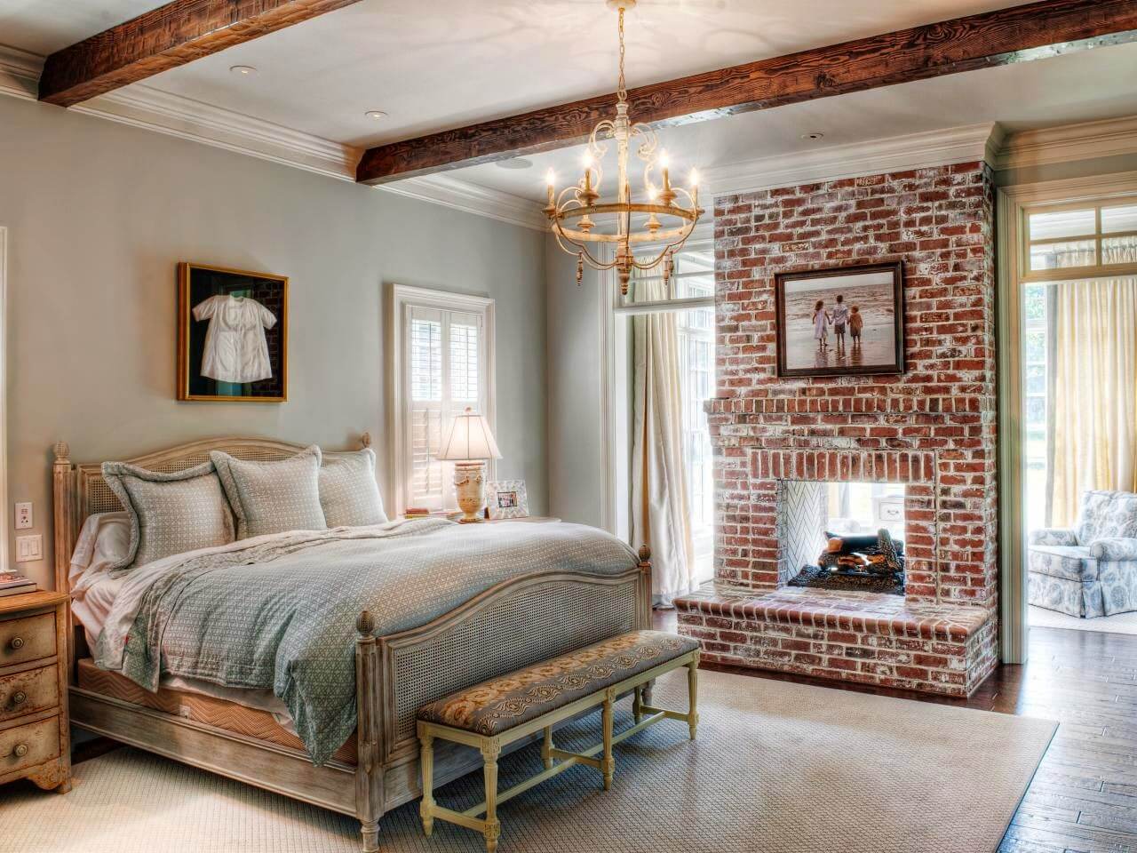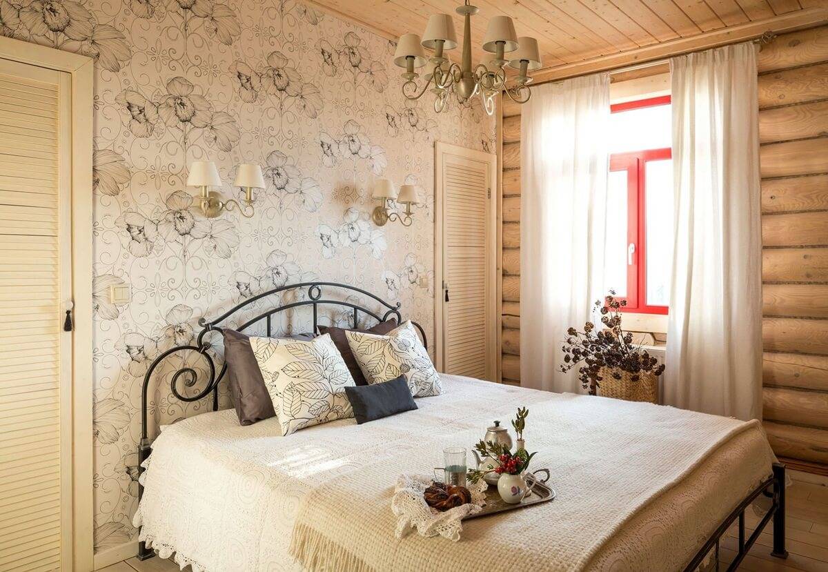 Для отделки спальни в стиле кантри подходят практически любые натуральные материалы.