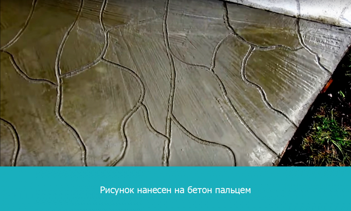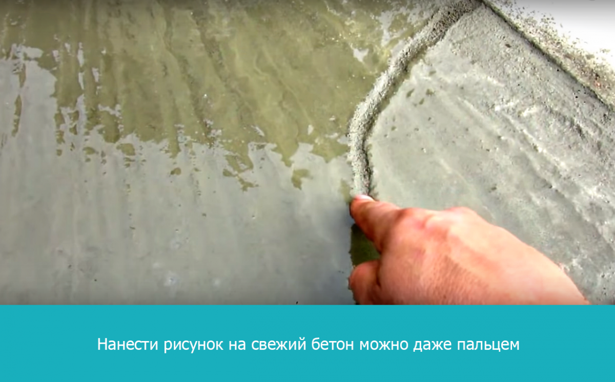 Нанести рисунок на свежий бетон можно даже пальцем или шпателем.