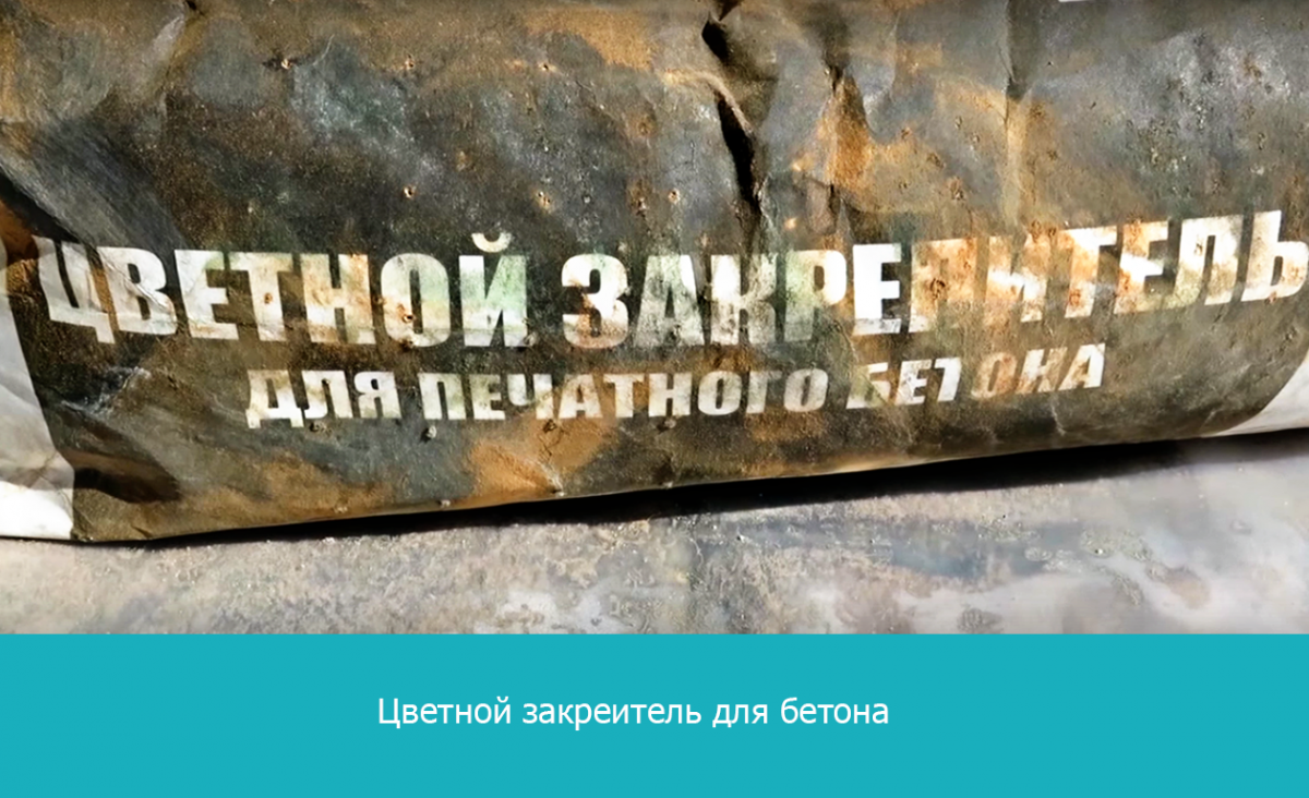Затем, чтобы получить ровный тон без проплешин, рассыпают еще немного закрепителя и снова разглаживают. Верхний слой бетона таким образом окрашивается в выбранный цвет, но имеет сероватый оттенок и выглядит очень натурально.