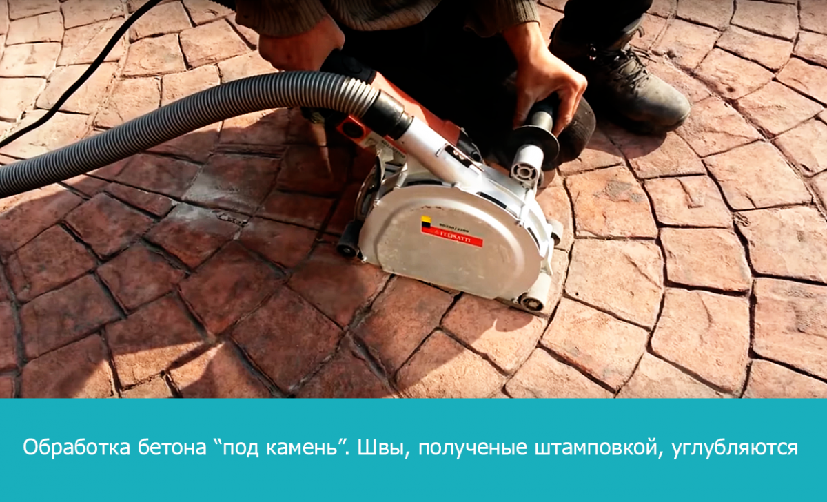 После этого «швы» посыпают песком и дают бетону схватиться. Результат – рельефная поверхность.