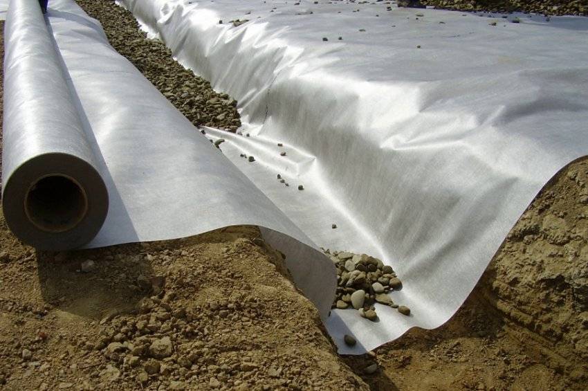 Особое внимание уделяют определению лицевой стороны ткани: эта часть должна оказаться сверху, чтобы пропускать влагу из котлована в нижележащий грунт.