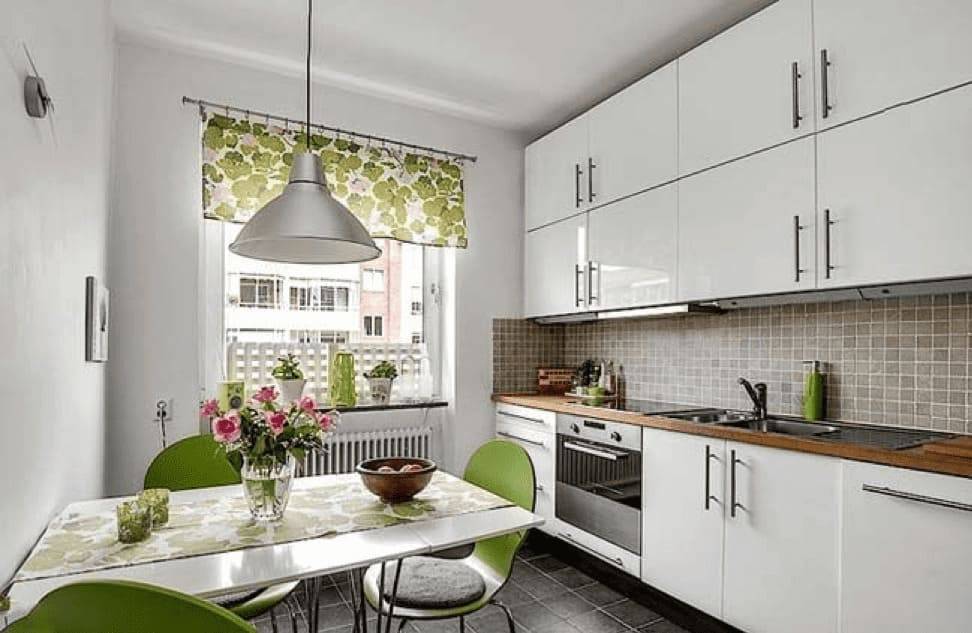 Кухня идеально впишется в узкое и малогабаритное помещение от 6 до 12 м2, ширина которого менее 2 м. В таком варианте предусматривают выдвижную систему для посуды, навесные шкафы – для продуктов. Чтобы не загружать пространство, покупают встраиваемую технику, между холодильником, мойкой и плитой располагают рабочие столы, на противоположной стороне размещают складной или пристенный, откидной стол.