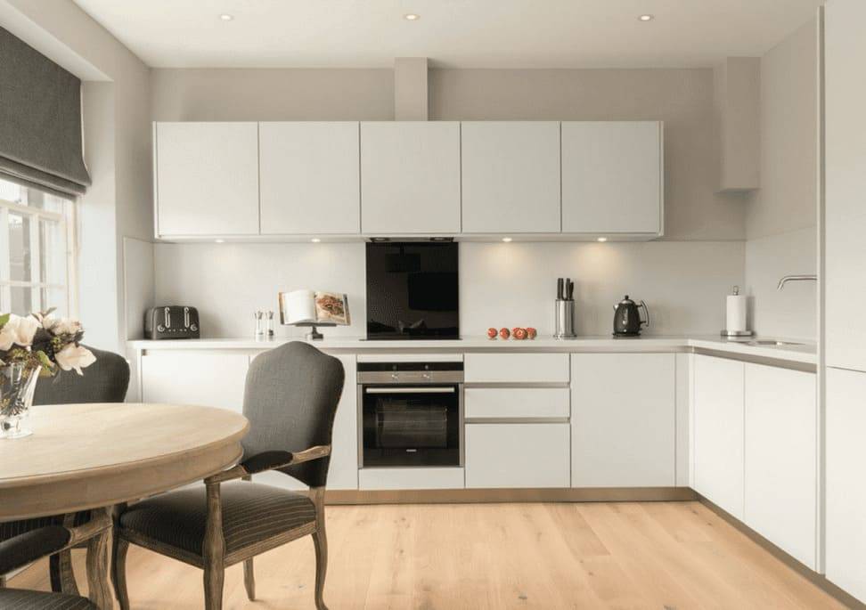 На сегодняшний день, наверное, 85% современных кухонь сделаны из этого материала. МДФ доступен, имеет много опций в плане дизайна и при этом служит намного дольше, чем мебель из ДСП.