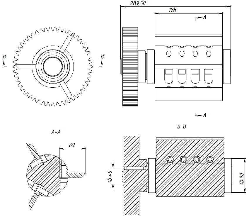 - вал с проточенными фасонными пазами и резьбовыми отверстиями для крепления ножей, в соответствии с приведенной схемой,