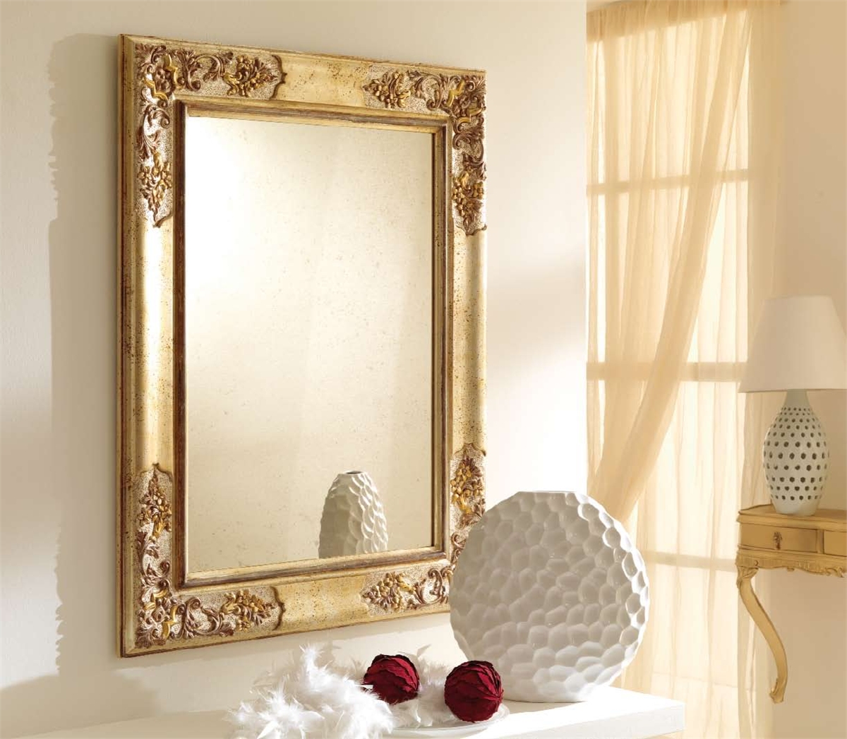 Обилие зеркал. Для декора часто применяются большие зеркала сложной формы.
