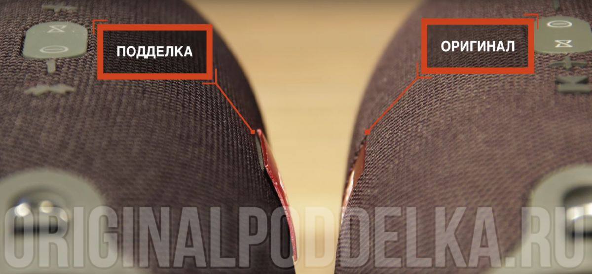 Перфорированный материал с логотипом фирмы у настоящей колонки приятнее на ощупь. У подделки он выполнен очень грубо.