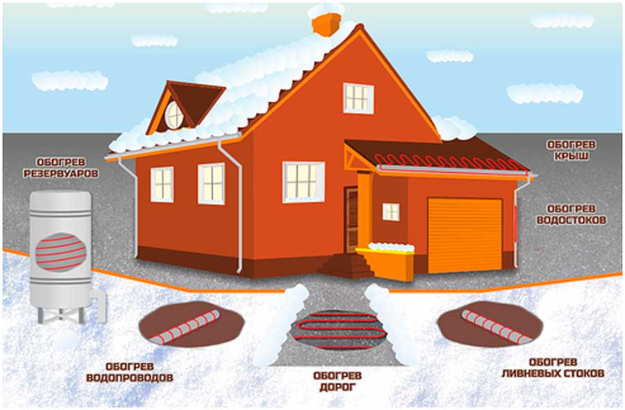 - обогрев труб;