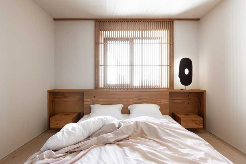 - При неконтрастной схеме цвет изголовья совпадает с цветом стен.