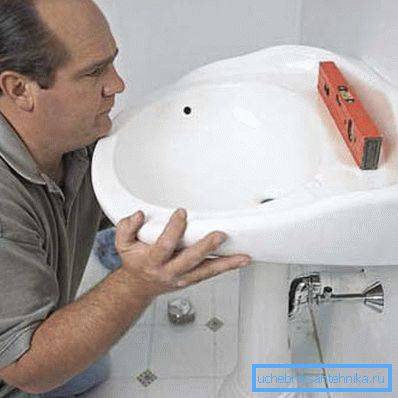 - Устанавливая раковину, воспользуйтесь помощью напарника.