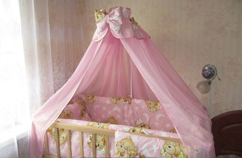 Для детских кроваток полог должен изготавливаться только из натуральных тканей, которые отлично пропускают воздух.